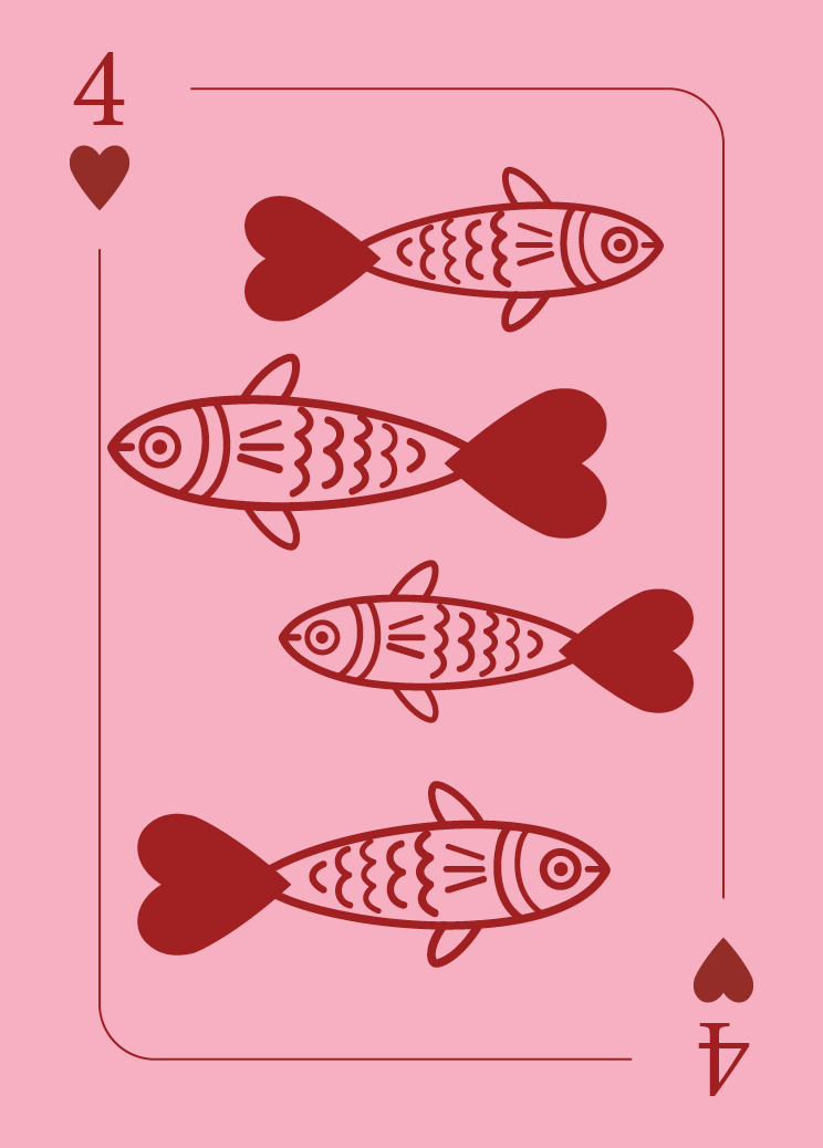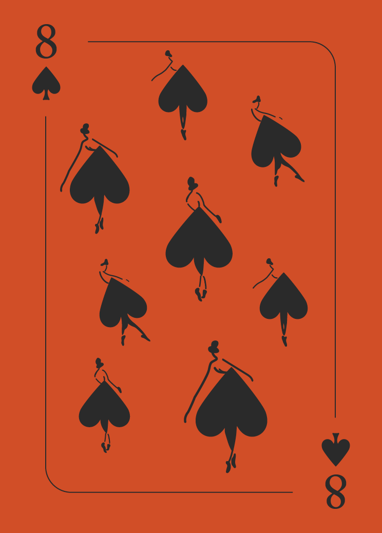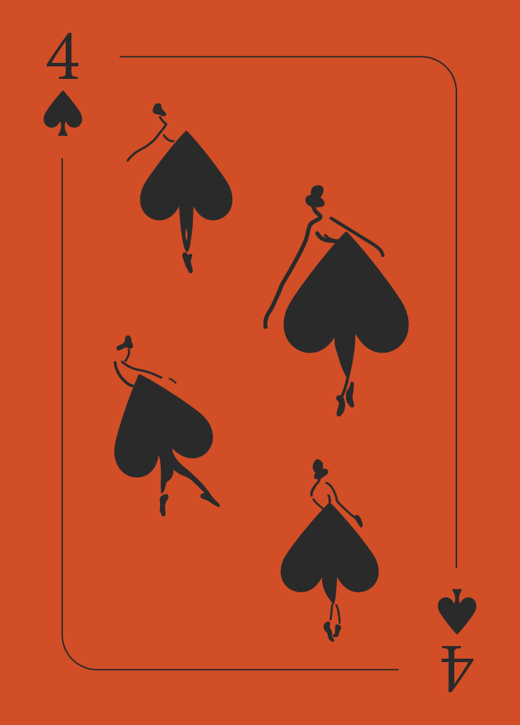I began the process in Illustrator by designing the four suit symbols. Establishing these foundational elements first was essential, as they would be repeated and integrated into the more complex card compositions later on. I focused on creating cohesive, balanced symbols that maintained the integrity of traditional suits while allowing room for creative reinterpretation.