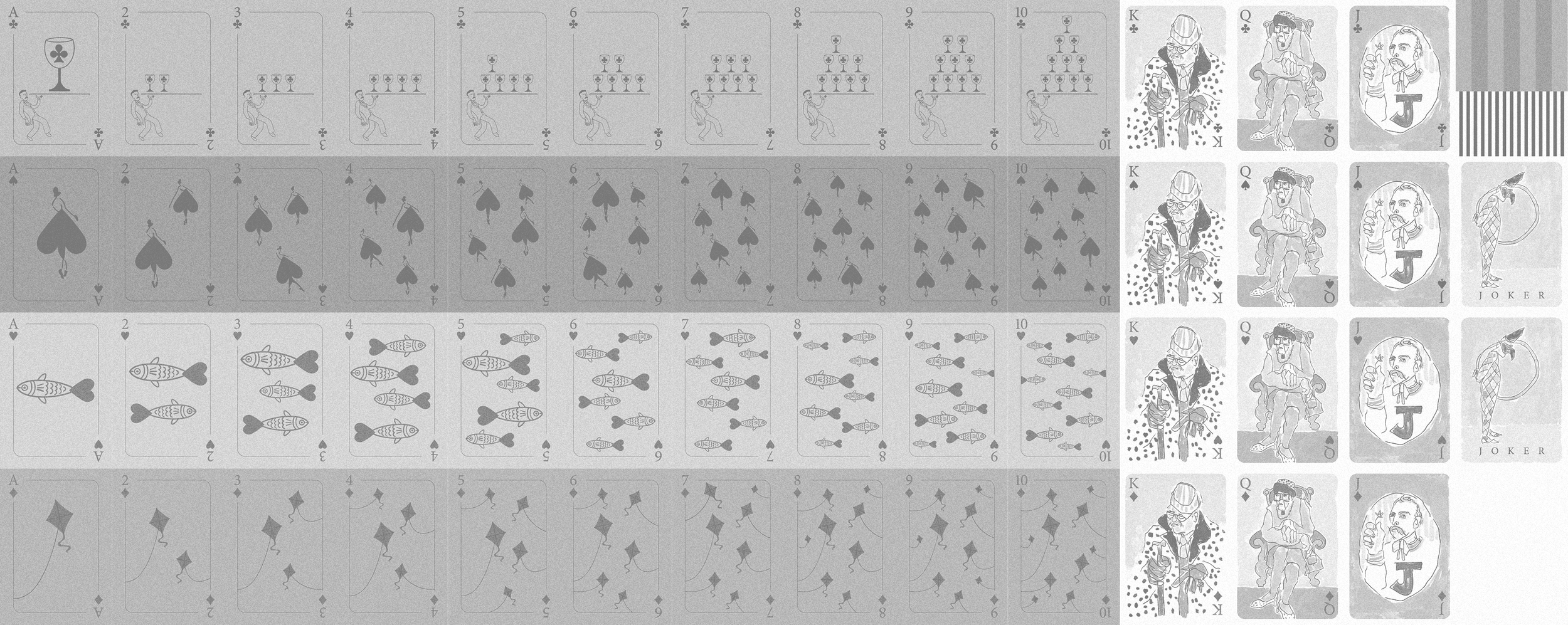 I crafted the face cards in Procreate for the flexibility and texture it allows in artwork. These paintings are borrowed from Isabella Cotier. I redrew select paintings with small adjustments to align them with the roles of King, Queen, Jack, and Joker.